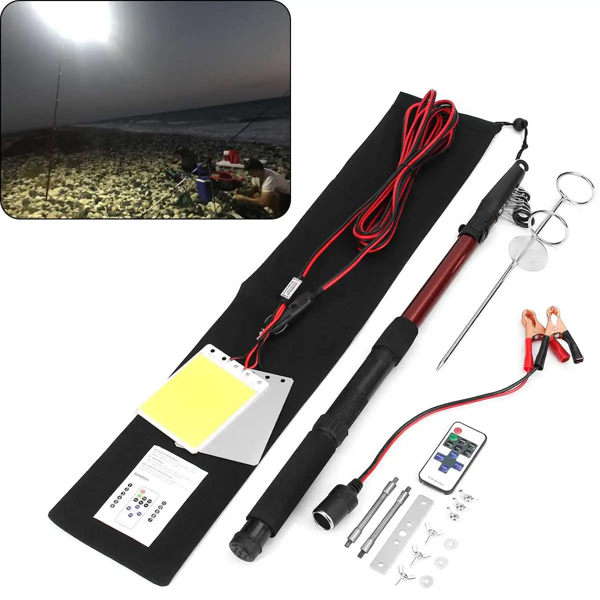 Review Top 3.75M 12V Telescopic LED Fishing Rod Outdoor Lantern Camping Lamp Light with Remote Control for Roa