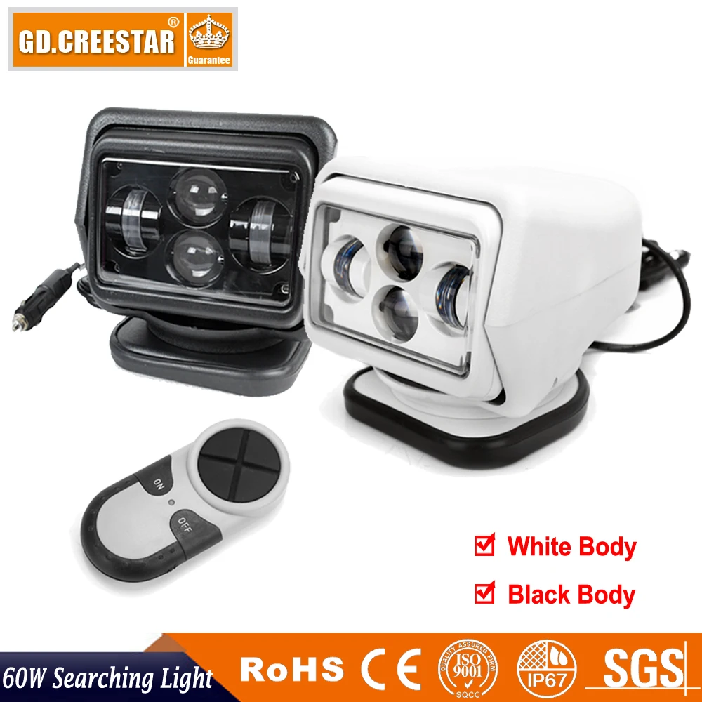 60watts 7inch LED wireless remote control 360degrees rotation search light for car suv off-road boa